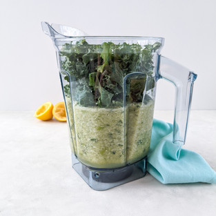 Now measure out your kale and spinach with a kitchen scale and set aside, you will be adding this in steps because it will not all fit in the blender.