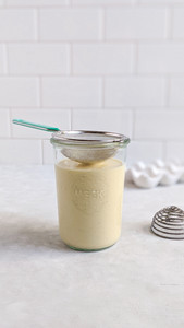 Pour your egg mixture through a find mesh strainer, you want to remove any clumps that did not get blended.