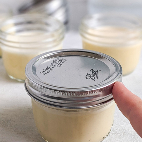 Use 4 ounce canning jars, do not use larger ones. Add your egg mixture to 6 jars so that they are about 3/4 full or slightly more.