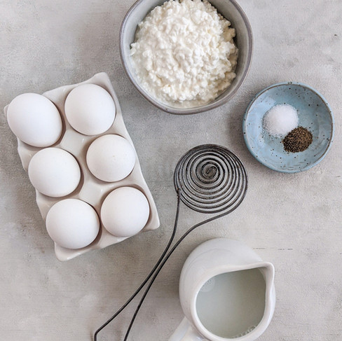 Add your eggs, cottage cheese, milk, and salt and pepper to a blender. Blend until smooth.