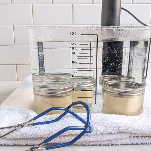 If you don't know what a sous vide is, it is a thermal immersion circulator....aka it cooks food by heating and circulating water. The food is submerged in the water bath either in food grade bags or glass jars like what I use for this recipe.